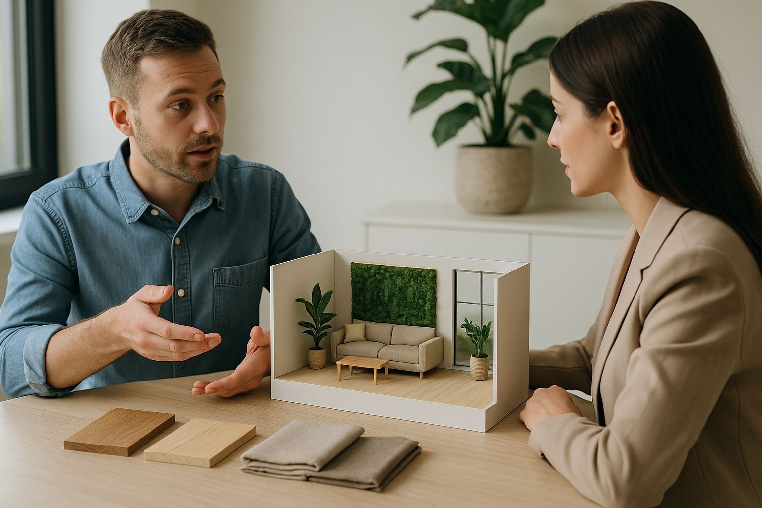 Представьте: вы заходите в квартиру клиента, а там — пластиковые панели, синтетические ковры, мебель из ДСП с запахом формальдегида и ни одного живого растения. Душно, как в космическом корабле. А теперь другая картина: деревянные поверхности, живые стены, мягкий свет сквозь панорамные окна, и воздух будто настоян на лесной свежести.